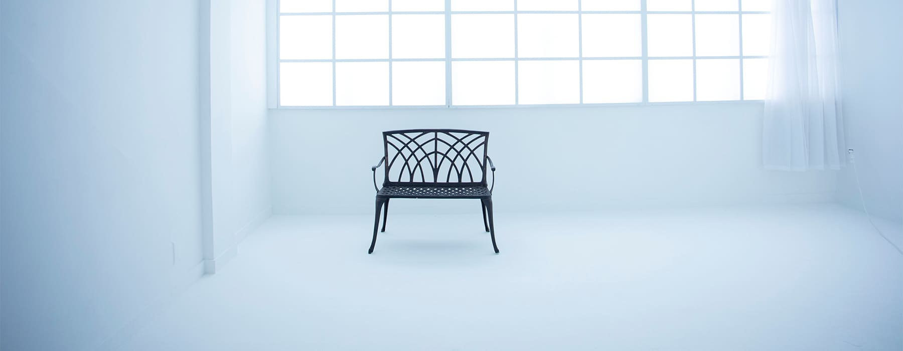 暁から陽が沈むまで、とても柔らかい自然光が入ってくる、白ホリゾントのフロア。