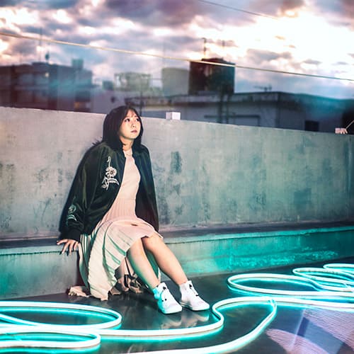 当スタジオ自体が、昭和な雑居ビルなので、屋上もしかり。フェンスも、柵も、イイ感じに、錆びてます。そこに、LEDのチューブを入れてみました。昼はそのまま。夜はサイバーパンクな絵が撮れます。