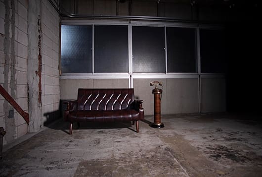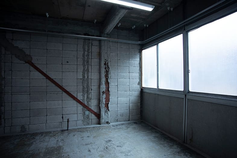 時間の流れを感じる廃墟風のコンクリートフロア。